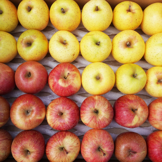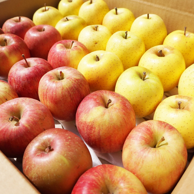 赤りんごと黄りんごを2種類、品種はおまかせでお届けします。