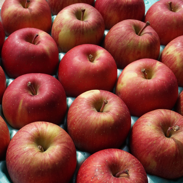 こちらはキズなし良品りんごです。色むらはありますが色が濃いめのもの、大きさのそろったものをおつめいたします。